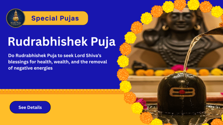 Rudrabhishek Puja is dedicated to Lord Shiva. During this puja, we pour milk, honey, and water over a Shivling, which represents Lord Shiva. While we pour these, we recite special prayers. This ceremony brings a lot of good things like peace and happiness, and it gets rid of all the bad stuff.